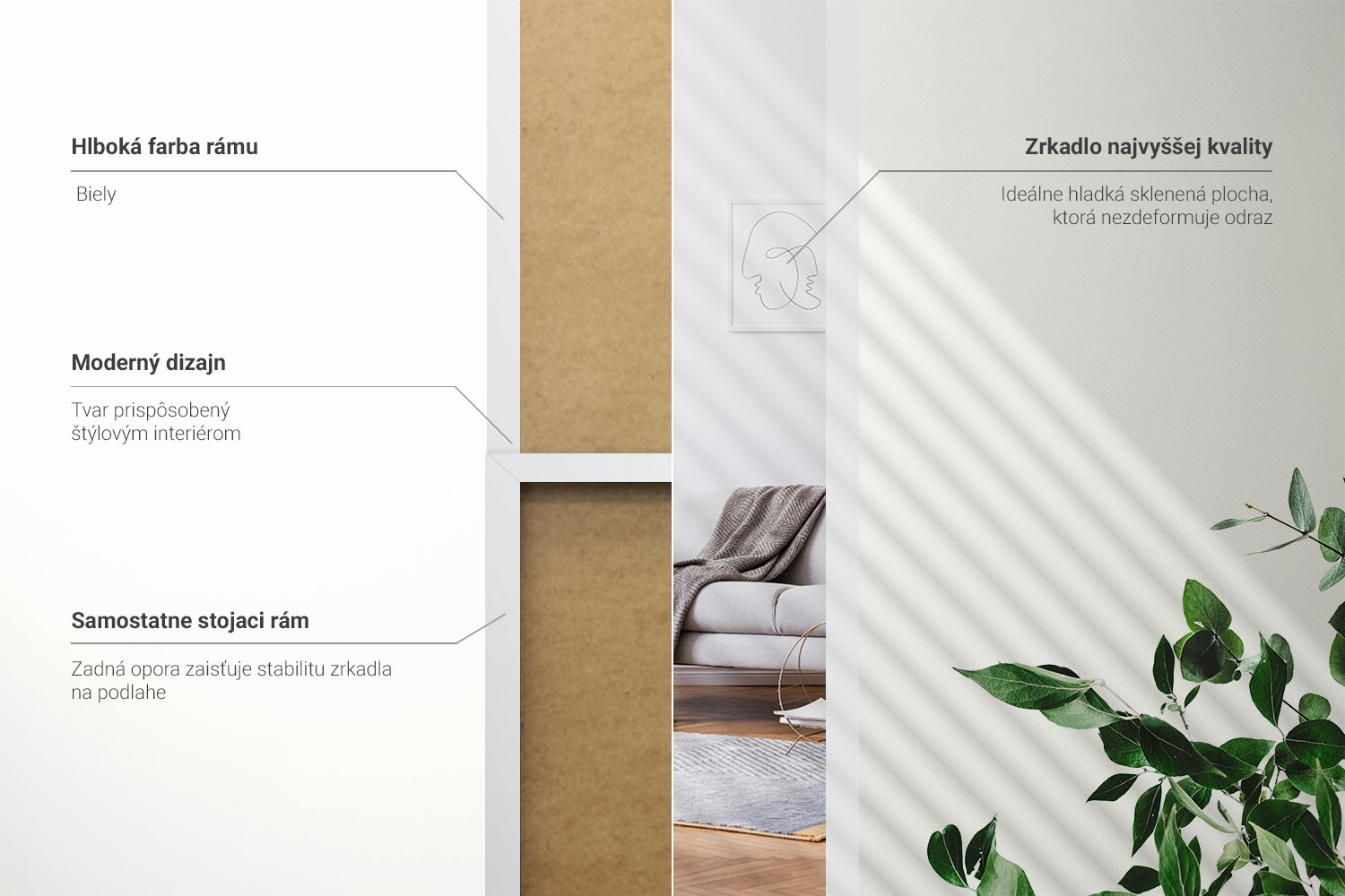 Zrcadlo je dodáváno se stojanem, takže ho můžete okamžitě umístit kamkoli bez jakékoli montáže – jednoduše tam, kde ho právě potřebujete. Jeho univerzální design se snadno přizpůsobí modernímu, minimalistickému i klasickému stylu a skvěle doplní jak světlé, tak kontrastní interiéry. Představte si, jak každý den začínáte s pocitem elegance a sebevědomí, když se v něm uvidíte od hlavy až k patě. Dopřejte svému domovu dokonalý vzhled a sobě radost z krásného detailu – toto stojací zrcadlo je investicí do stylu, který vás bude těšit každý den.