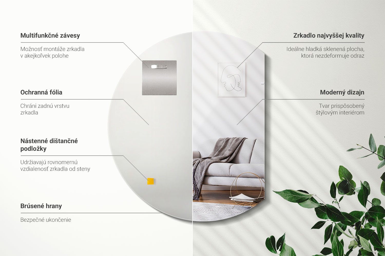 Zadná strana zrkadla (ochranná fólia) sa môže farebne líšiť od tej na obrázku v ponuke. Nemá to vplyv na kvalitu produktu a nie je dôvodom na reklamáciu